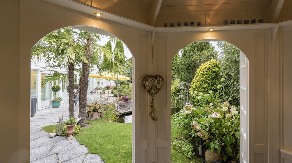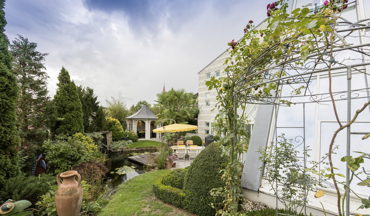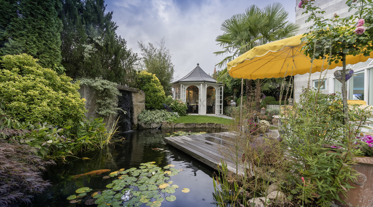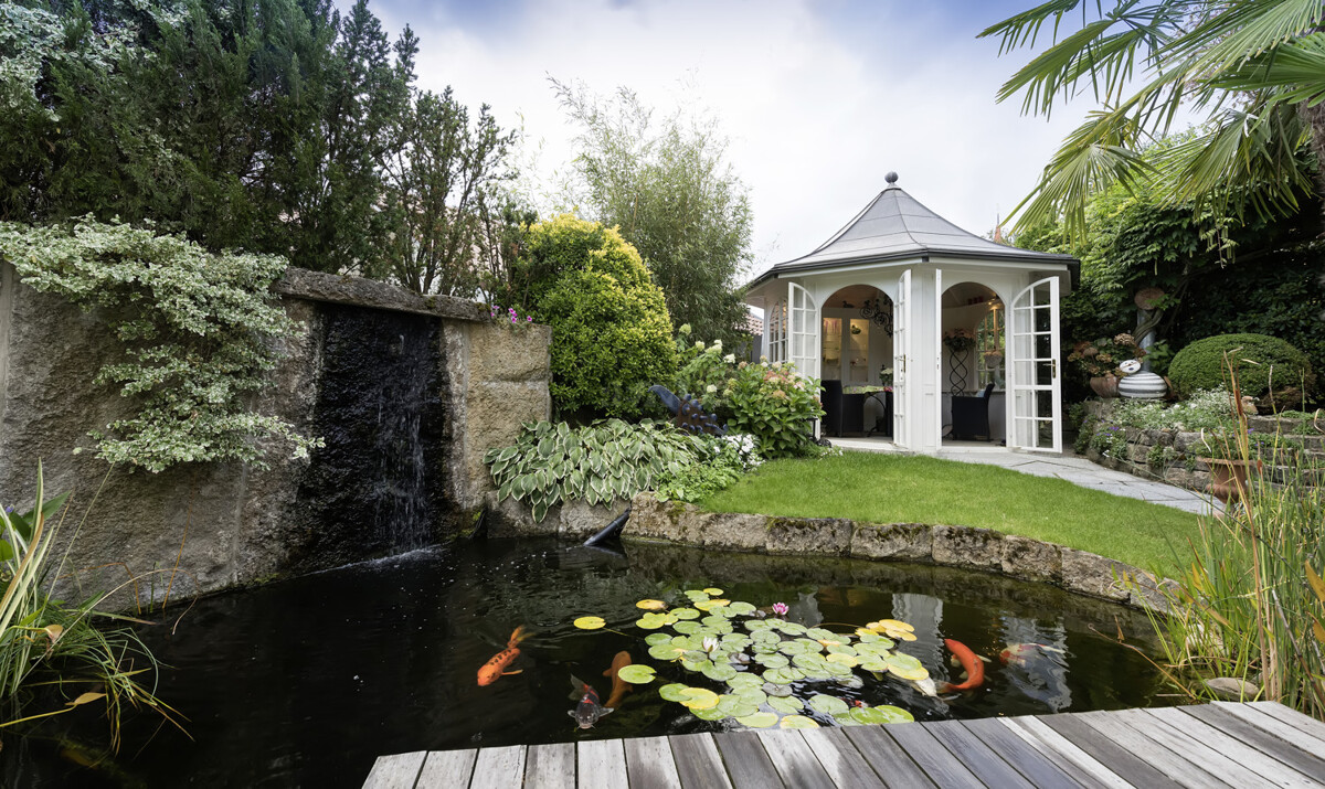- Traumhaft angelegter Garten mit Pavillon und Teich mit Wasserfall