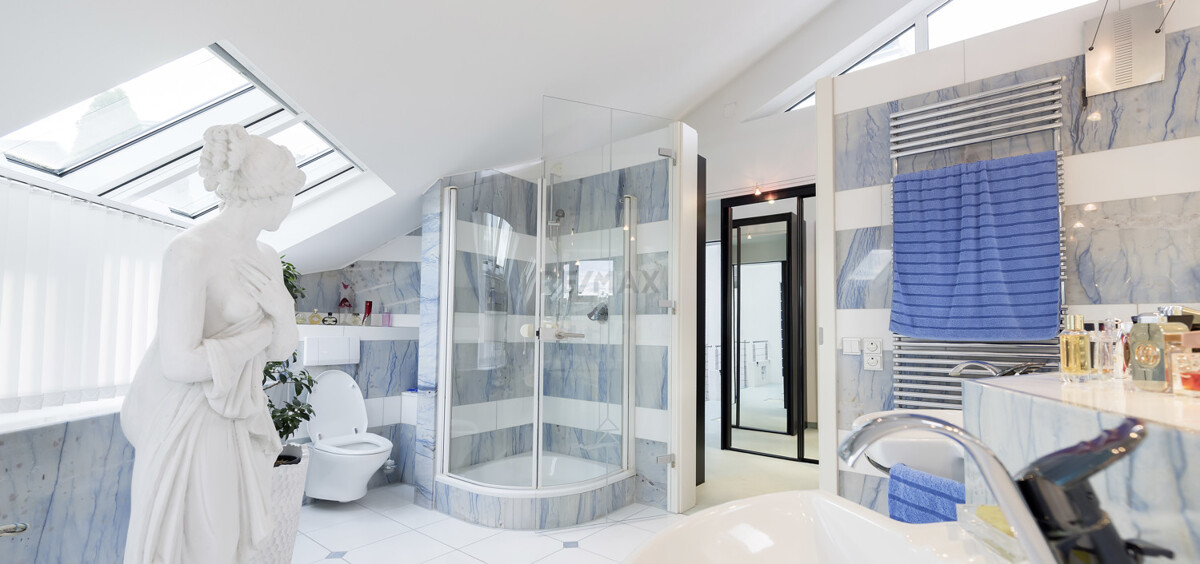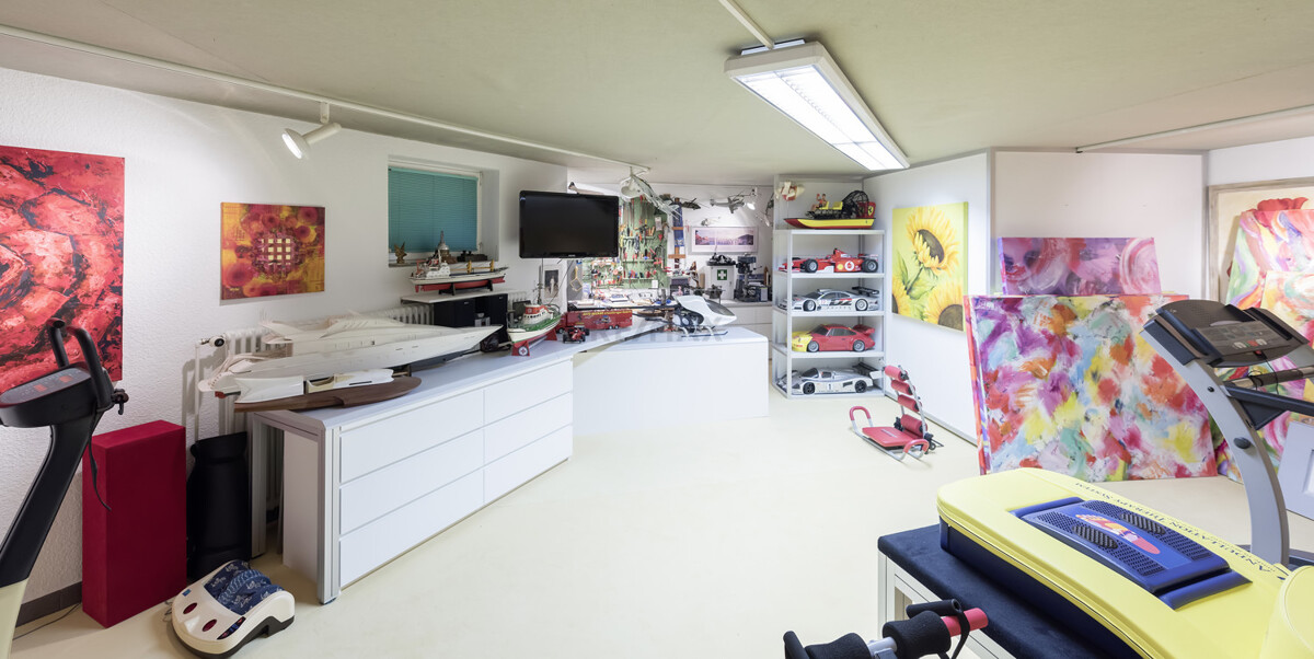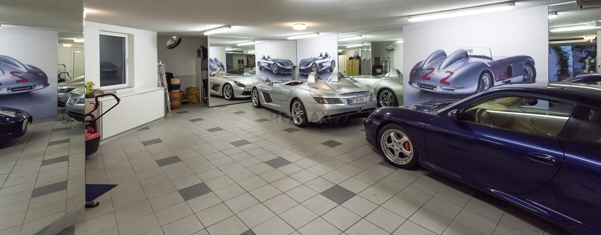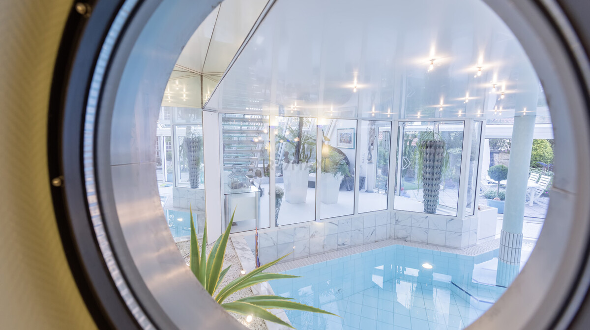 Die Villa punktet auch mit einer beeindruckenden Nutzfläche von 103 m² im Keller, die Ihnen vielseitige Nutzungsmöglichkeiten bietet – ob als Hobbyraum, Fitnessstudio, Home Office oder Weinkeller. Ein fast ca. 100 m² großer Pool mit Gegenstromanlage und separatem Whirlpool sowie ein Dampfbad sorgen für Wellness und Entspannung im eigenen Zuhause. Durch den direkten Zugang zur großzügigen Terrasse und in den traumhaft angelegten Garten mit Palme können Sie hier Ihre lauen Sommerabende und gesellige Grillparty genießen. Neben einem Teich und einem Wasserfall finden Sie auch einen verglasten Pavillon.