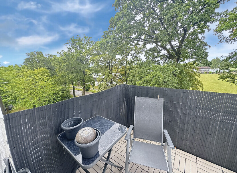 Das Herzstück der Wohnung bildet der geräumige Wohn- und Essbereich. Großzügige Fensterflächen sorgen für viel Tageslicht und schaffen eine freundliche Atmosphäre. Von hier aus gelangen Sie direkt auf den Balkon, der sich wunderbar für entspannte Stunden im Freien oder für den morgendlichen Kaffee eignet.