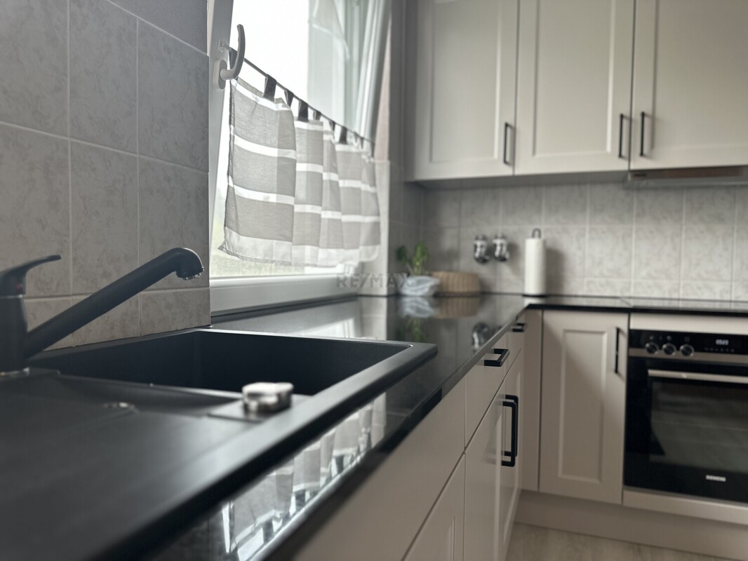 Die im Kaufpreis enthaltene neuwertige Einbauküche ist modern, gepflegt und bietet viel Stauraum.
