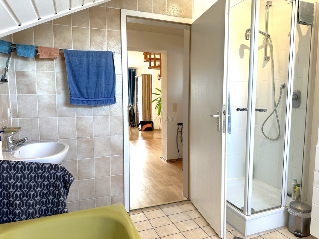 Das Tageslichtbad mit Badewanne und Dusche hat seine ganz eigene Nostalgie und wartet darauf, mit einer Prise Kreativität in ein modernes Wohlfühlbad verwandelt zu werden. Die Dusche wurde hier schonmal erneuert.