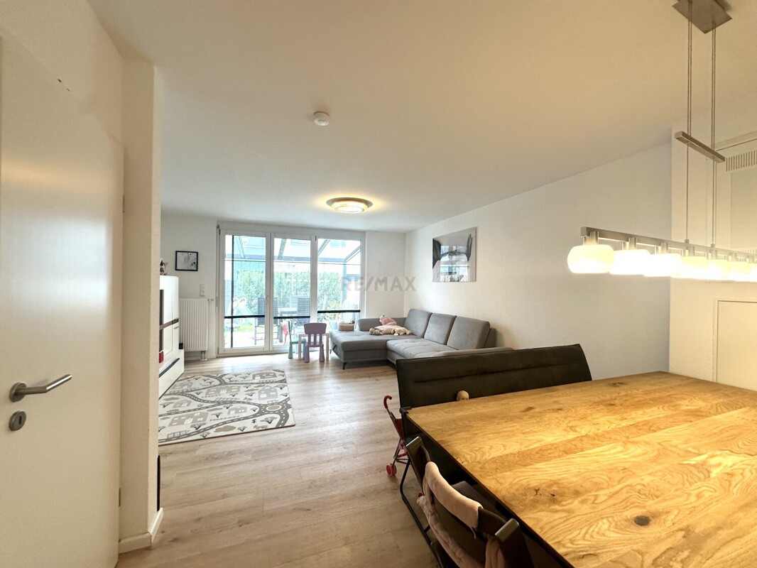 Im EG befindet sich ein geräumiger Flur für die Garderobe, ein großzügiges Gäste-WC, eine hochwertige Einbauküche, Essplatz und hellem Wohnzimmer mit Ausgang zur überdachten Terrasse und Garten.