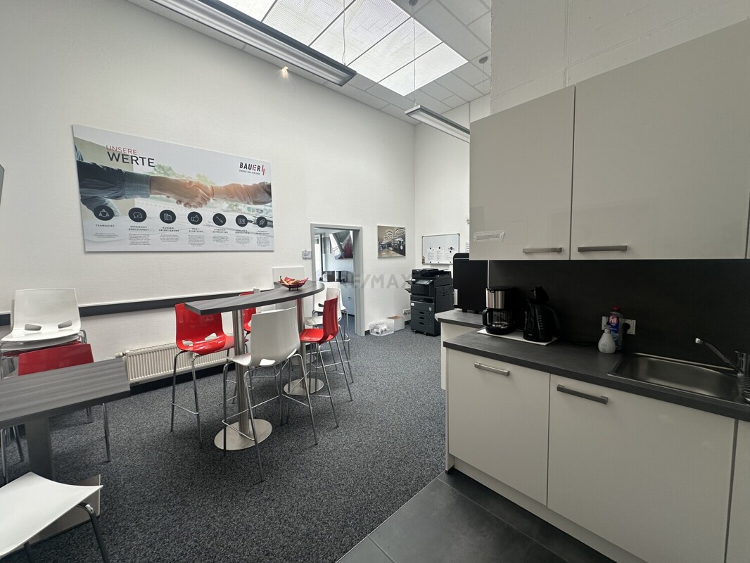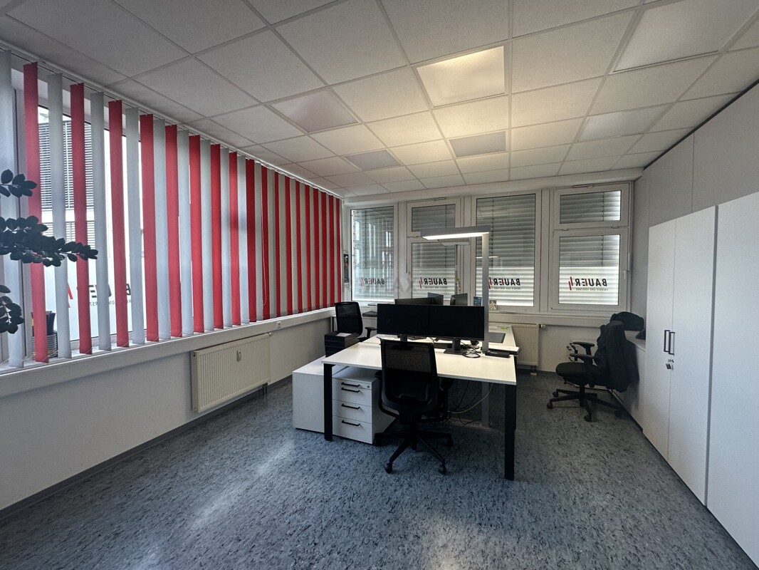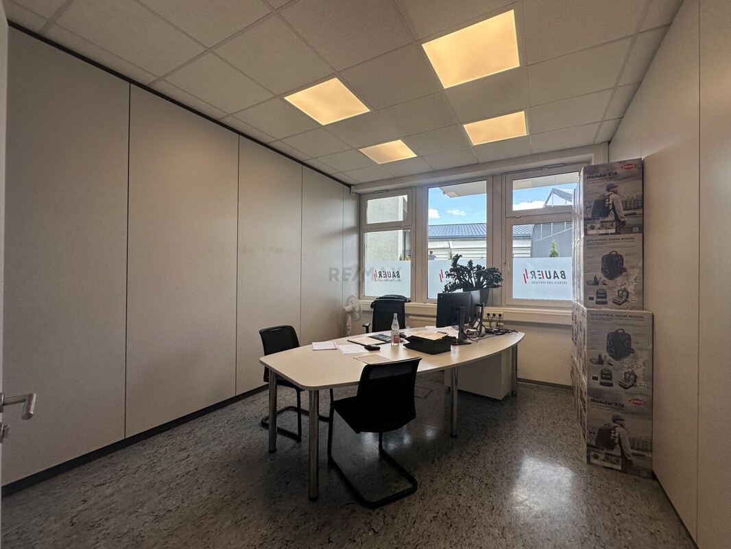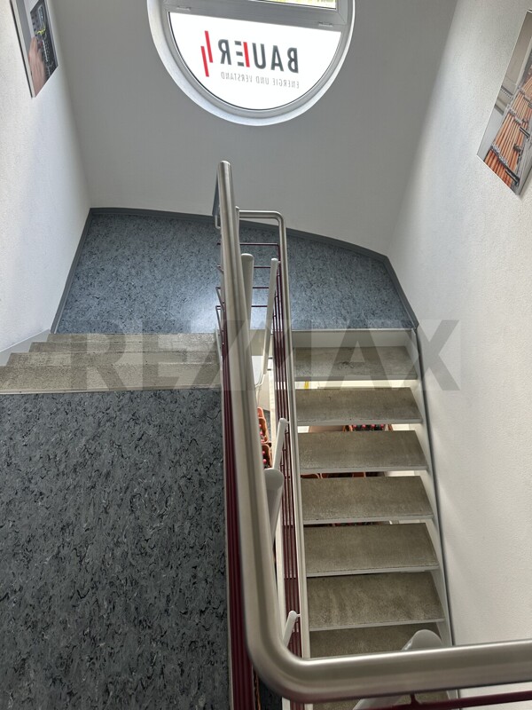 Im EG befindet sich ein Besprechungszimmer, 4 Büroräume eine Küche, Bad und sep. WC und Serverraum.Im OG befindet, steht Ihnen ein großer Ausstellungsraum, 2 Büroräume, eine Küchenzeile, ein sep. WC und ein Balkon.