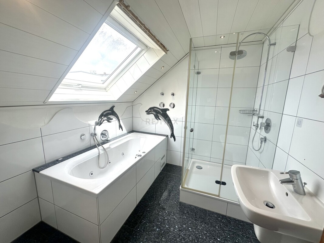 Über eine innenliegende massive Treppe erreichen Sie das 2. Dachgeschoss, in dem sich das private Rückzugsareal der Wohnung befindet: ein geräumiges Schlafzimmer mit Dachschrägen und gemütlichem Ambiente. Das moderne Tageslichtbad wurde 2020 umgebaut. Es wurde ein Whirlpool, eine Wanne und eine Fußbodenheizung mit Strom eingebaut.