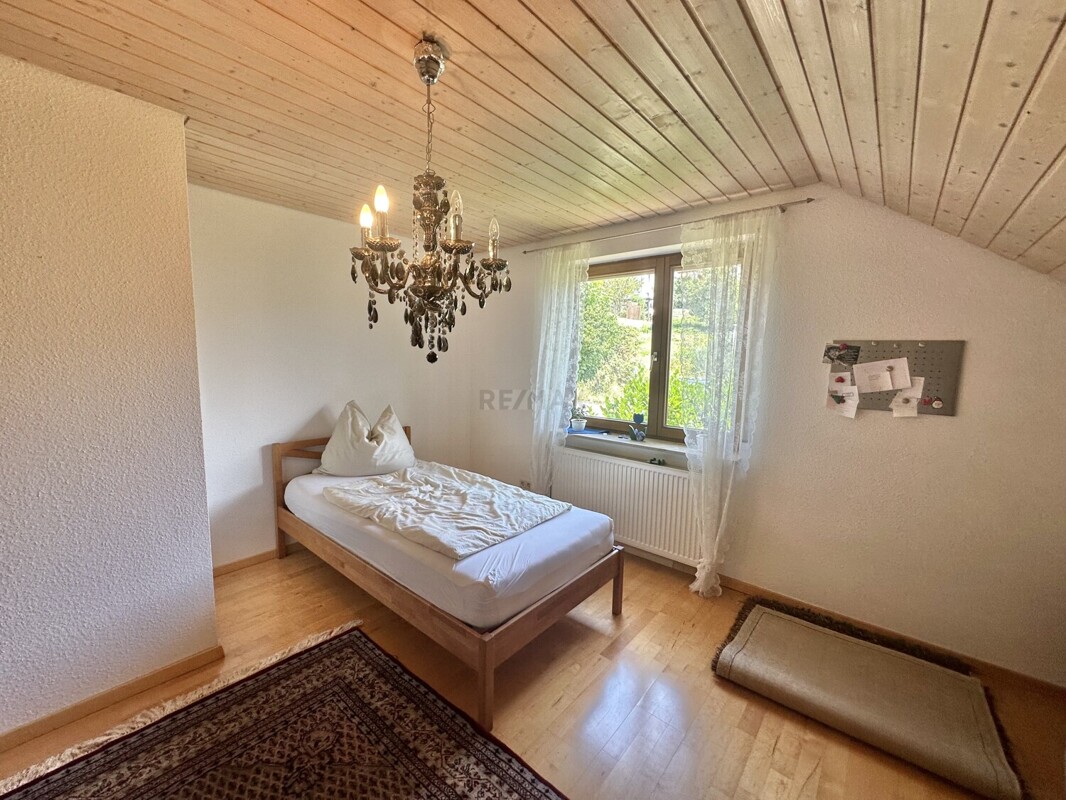 Im Dachgeschoss befinden sich drei gut geschnittene Schlafzimmer – eines davon mit Zugang zum Balkon, der einen herrlichen Ausblick in die grüne Umgebung bietet. Das stilvoll gestaltete Badezimmer befindet sich auf dieser Etage.