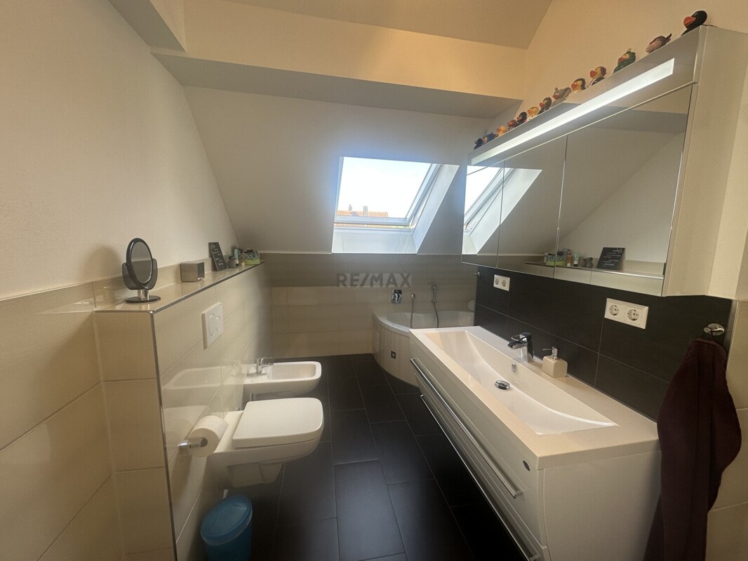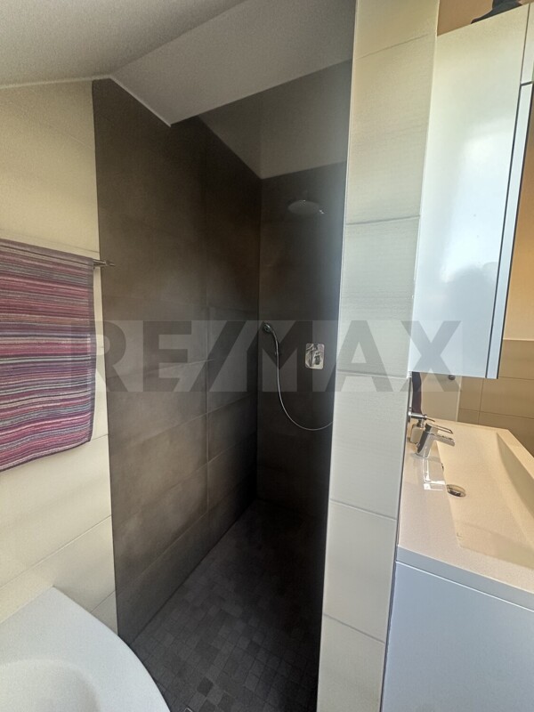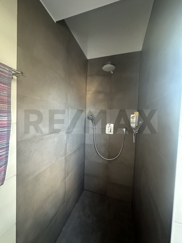 Das Hauptbad wird zum privaten Spa mit Doppelwaschbecken, begehbarer Dusche, Toilette, Bidet und einer Eckbadewanne mit Whirlpoolfunktion. Ein weiteres Bad mit Waschmaschine und Trockner sowie eine separate Gäste-Toilette ergänzen den Komfort.