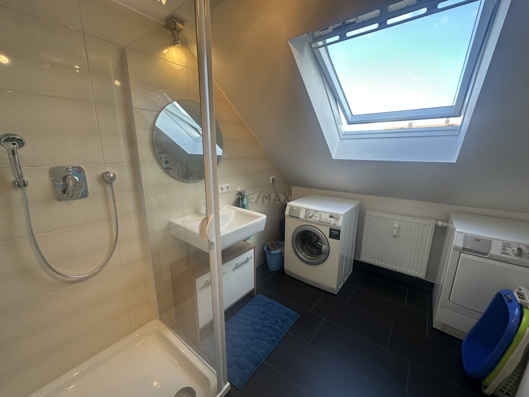 Zur Ausstattung gehören elektrische Rollläden, Gas-Zentralheizung, ein Kellerraum (weitere auf Wunsch anmietbar), eine abschließbare Garage und ein Stellplatz direkt davor – selten in dieser Lage.