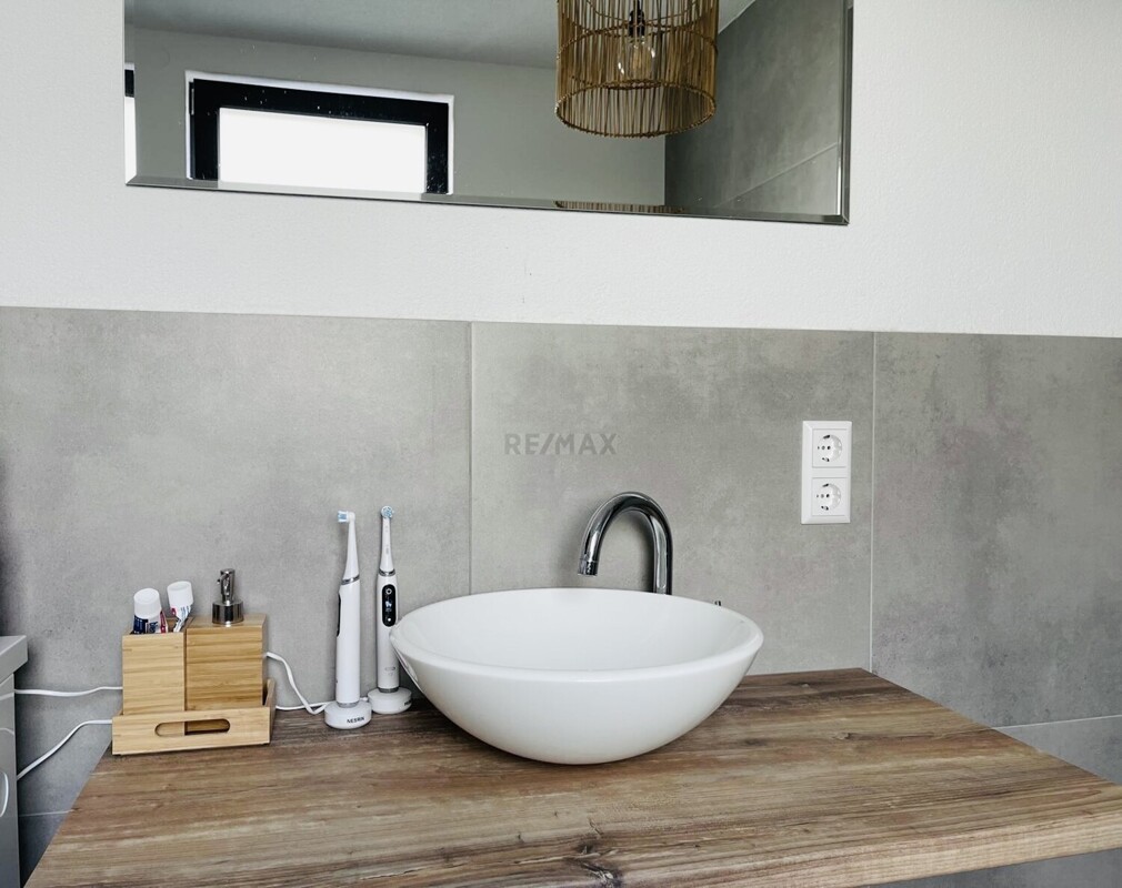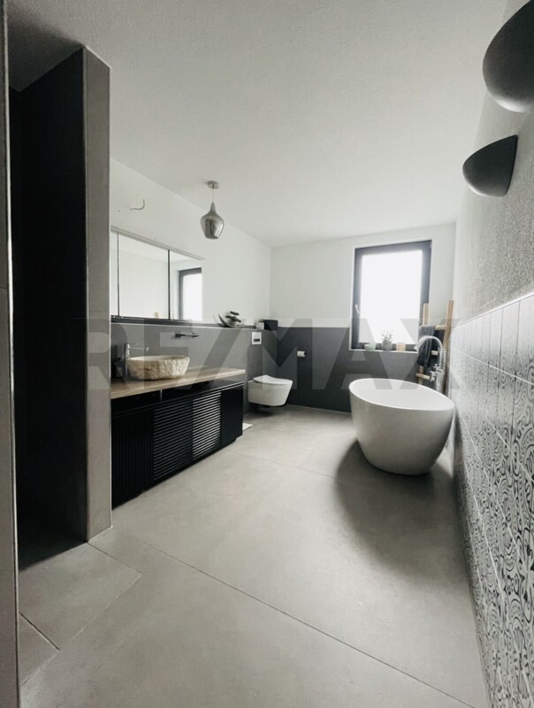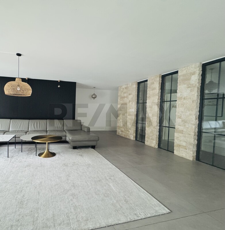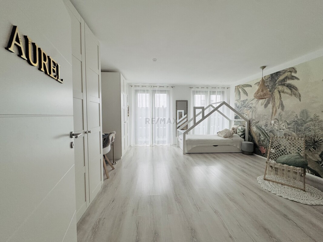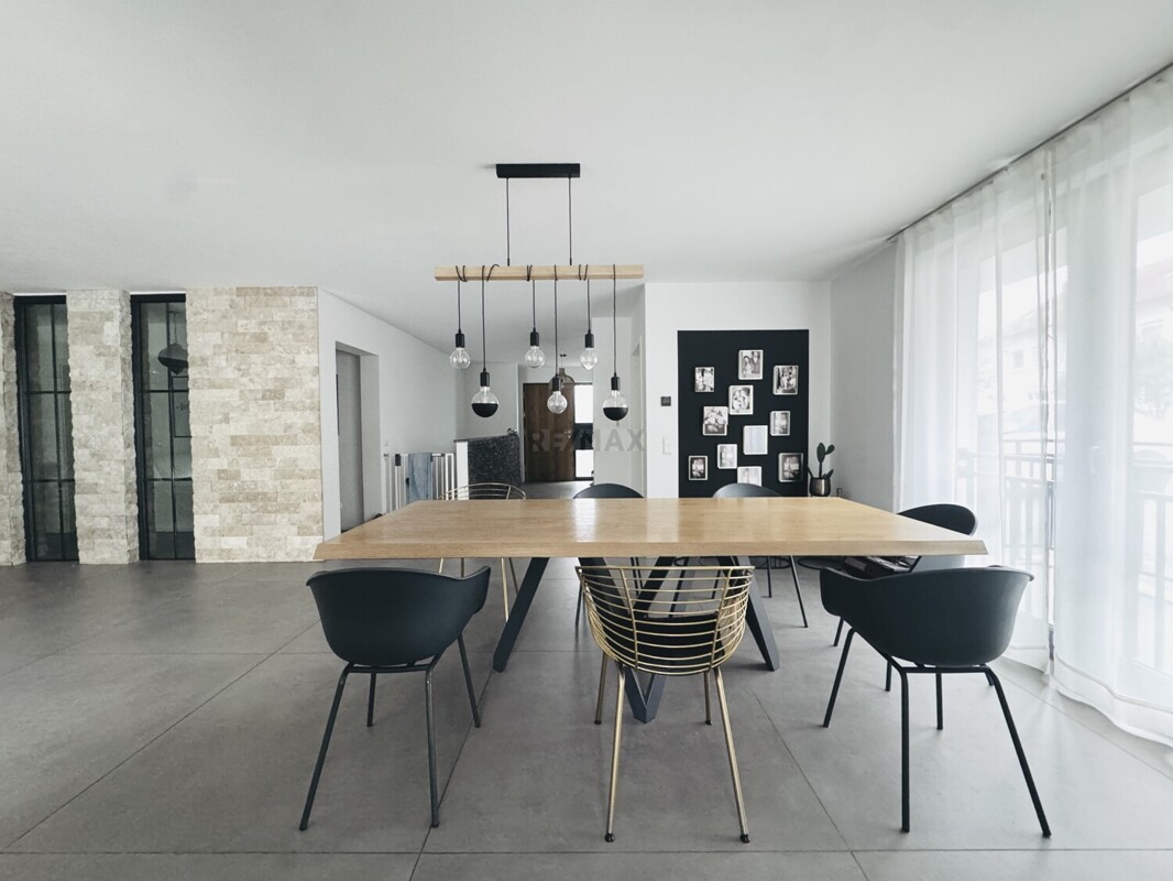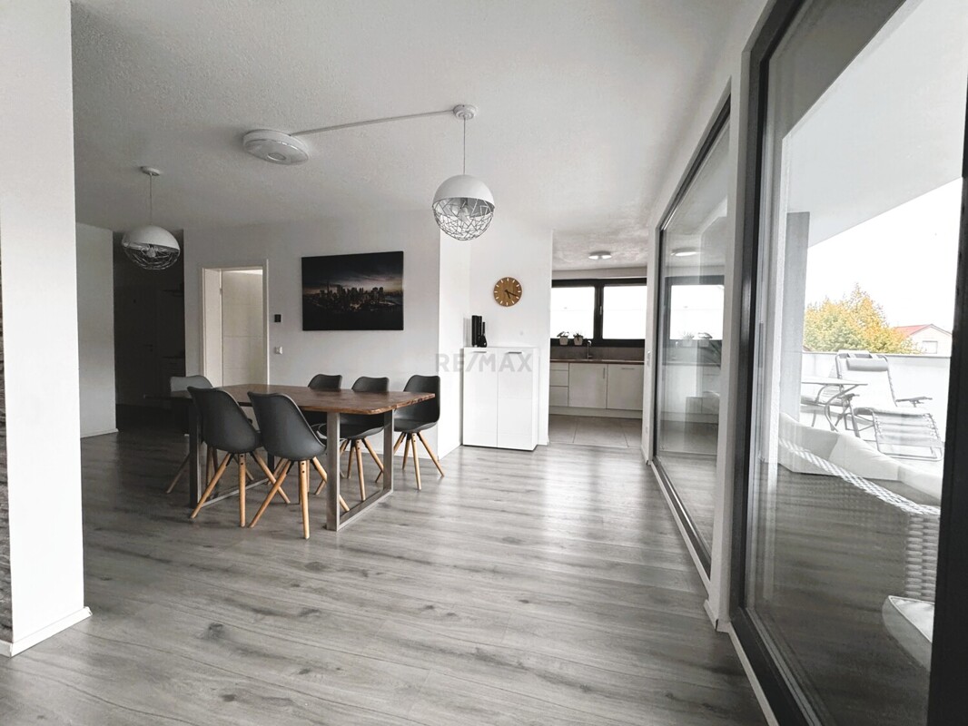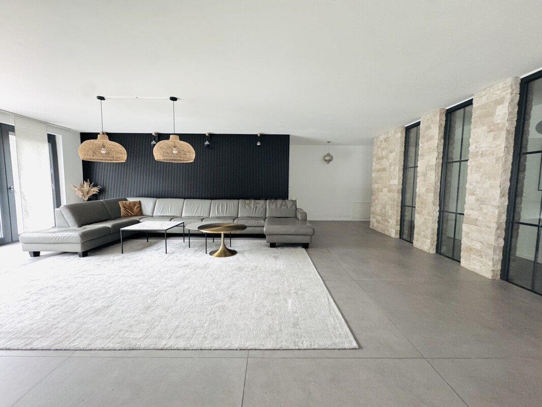 Die 5,5 Zimmer Erdgeschosswohnung verfügt über eine Gesamtfläche von 180,49 m² (die Terrasse ist mit 12,75 m² anteilig inkludiert) und einem separaten Eingang. Direkt ans EG angegliedert ist ein großer Hobbyraum mit Wohncharakter welcher 53,81 m² groß ist.