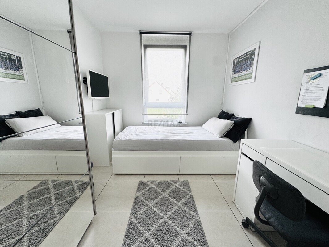 Das Hauptschlafzimmer bietet ausreichend Platz für ein großes Bett sowie einen Kleiderschrank und lädt zum Entspannen ein.