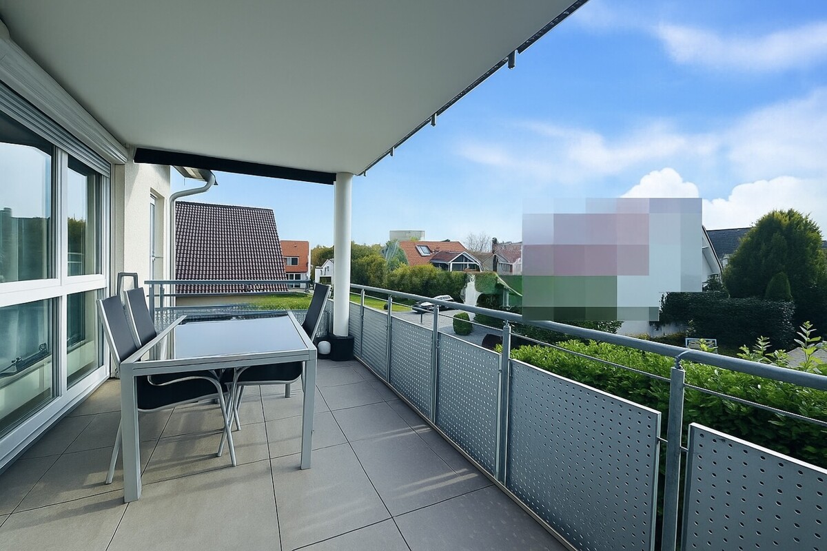 Der große Balkon mit ca. 14 m² lädt zum Verweilen ein, ein idealer Platz für entspannte Sommerabende mit Blick ins Grüne.