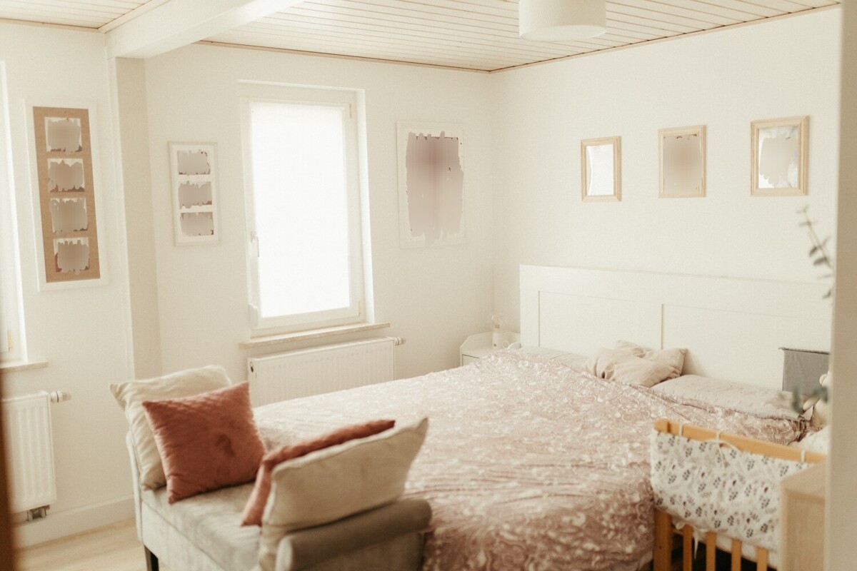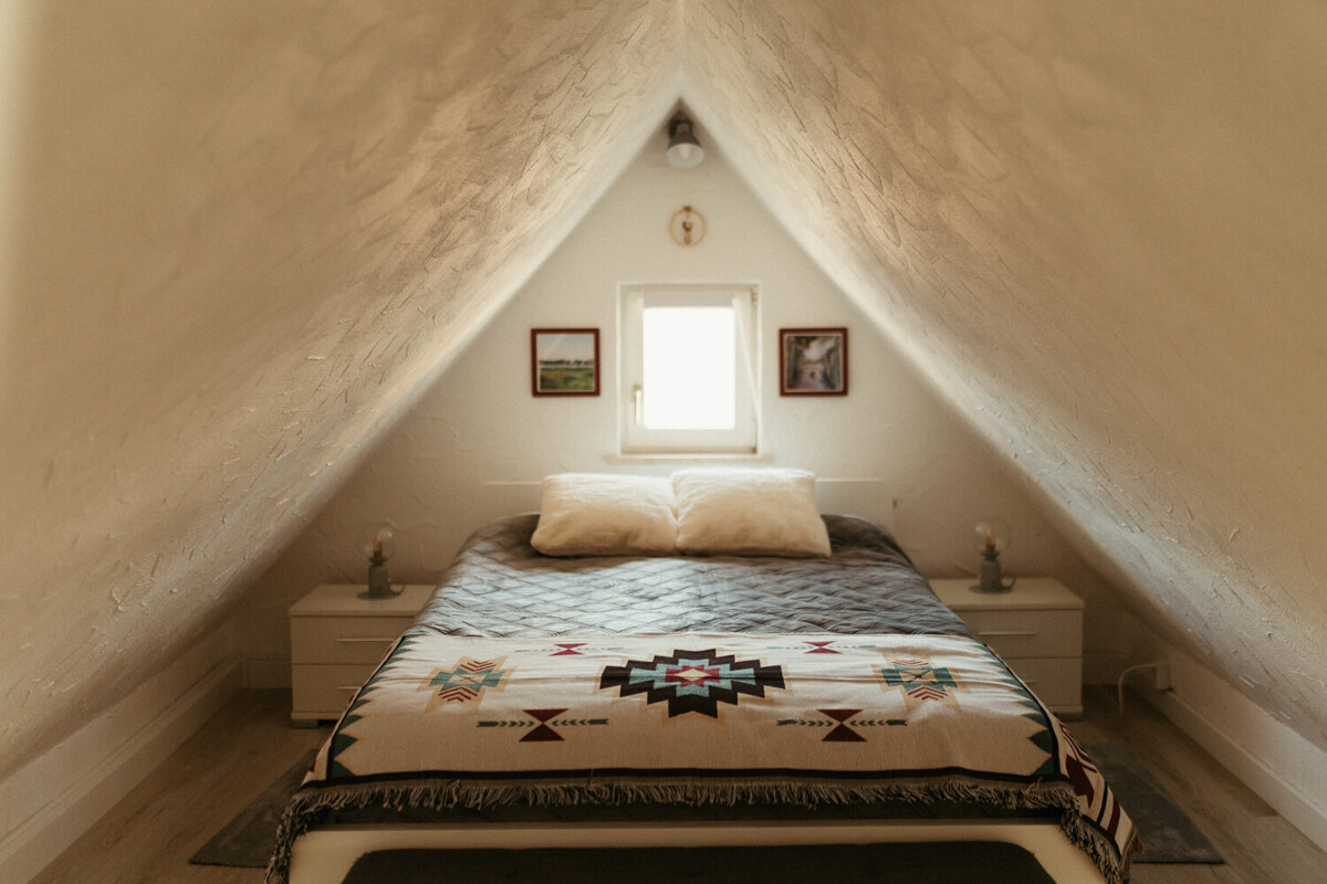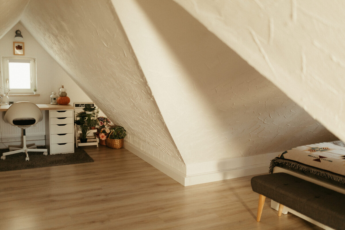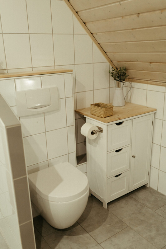 Über die wunderschön restaurierte Holztreppe gelangen Sie in das Obergeschoss. Dieses unterteilt sich in 2 gleich große Schlafzimmer, ein raumhoch gefliestes Tageslichtbad, ein zweites Gäste-WC sowie den Zugang zum ausgebauten Spitzboden im Dachgeschoss, ideal als Büro zu benutzen. Alle Wohn- und Schlafzimmer wurden im Jahr 2022 einheitlich mit einem schönen, hellen Laminat ausgestattet.