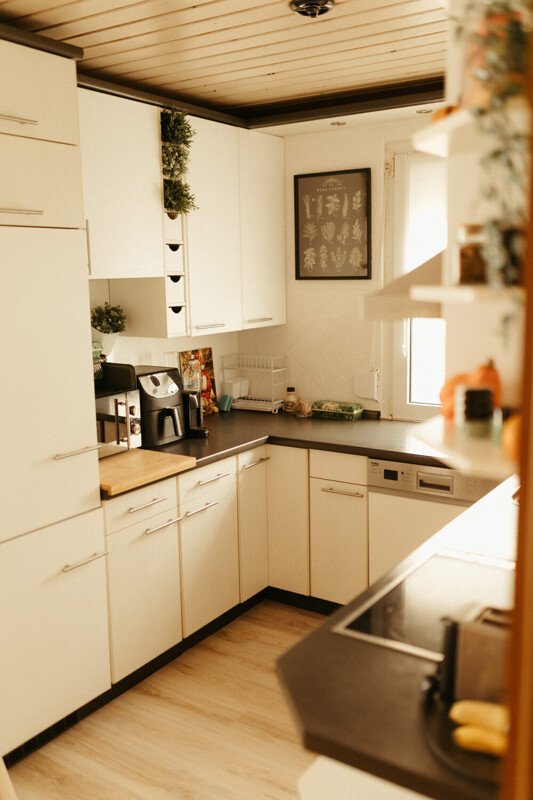 Das Haus befindet sich auf einem 288 m² großen, rundum eingezäuntem Grundstück mit einer sehr großen Terrasse, Wintergarten, Carport und zusätzlichem Platz für 3 weitere Pkw. Sie betreten es über den beheizten, hell gefliesten Wintergarten durch eine neue Haustür aus dem Jahr 2023. Linkerhand führt die Treppe direkt in den Keller mit einem schönen Gewölbekeller. Im Hochparterre gelangen Sie direkt in das große, ruhige Wohn-Esszimmer. Durch mehrere Fenster in gleich 3 Himmelsrichtungen ist es ausgesprochen hell und freundlich. Direkt nebenan befindet sich die separat gelegene Küche, die mit einer hellen Einbauküche ausgestattet ist. Zusätzlich befindet sich auf dieser Etage das 3. Schlafzimmer sowie ein Gäste-WC mit Tageslicht.
