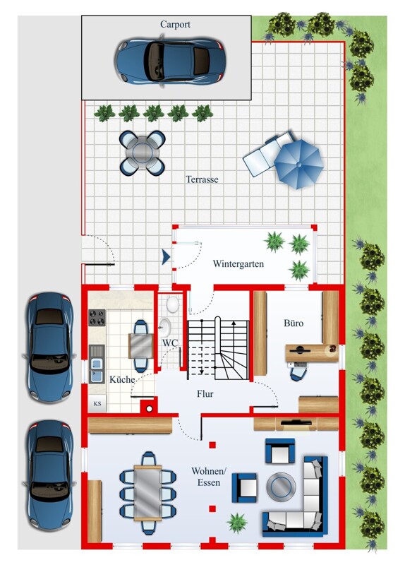 - Carport mit zusätzlichem Zugang vom Grundstück