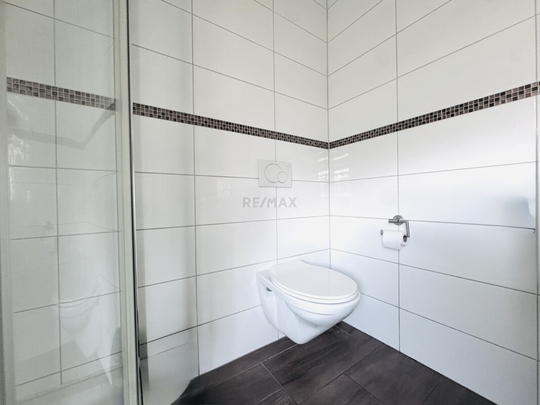 Diese Etage verfügt über ein großes, helles Tageslichtbad mit Dusche und WC und einen kleinen Raum, welcher ursprünglich als Gäste-WC vorgesehen war und momentan als praktische Abstellkammer dient. Sämtliche Anschlüsse sind weiterhin vorhanden und funktionsfähig, sodass eine erneute Nutzung als Gäste-WC möglich ist.