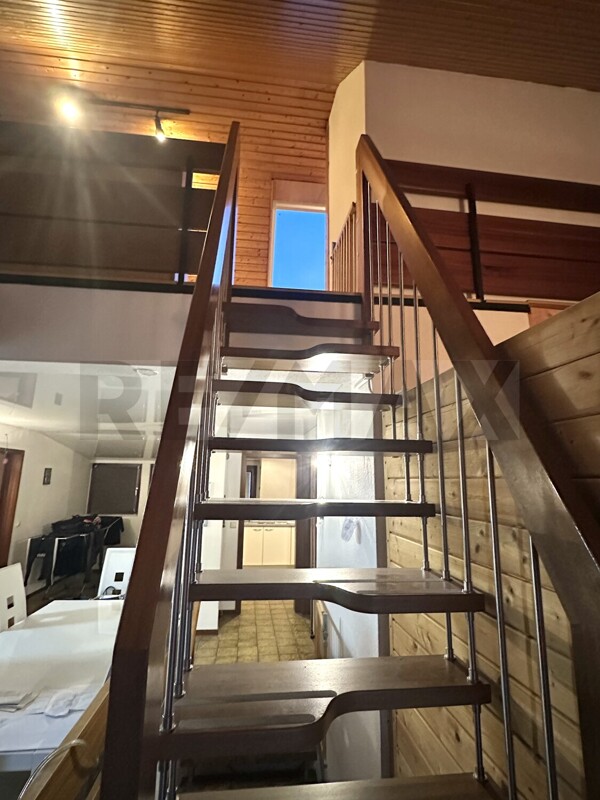 Auf der unteren Wohnebene befinden sich ein helles Wohnzimmer mit Zugang zur ersten Loggia, ein offener Essbereich, ein Schlafzimmer, eine Küche inklusive Waschmaschine sowie ein Tageslichtbad. Auf dem Weg in das Dachgeschoss liegt die gemütliche Sauna, die zum Entspannen einlädt.