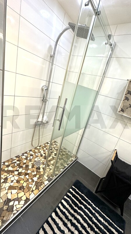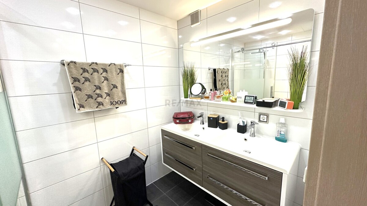 Das moderne Badezimmer überzeugt mit hochwertigen Armaturen und einem Markenwaschbecken von Musterring. Auch die übrige Ausstattung der Wohnung spiegelt den hohen Qualitätsanspruch wider: elegante Innentüren, geschmackvolle Bodenbeläge und teilweise erneuerte Fenster schaffen ein harmonisches Gesamtbild.